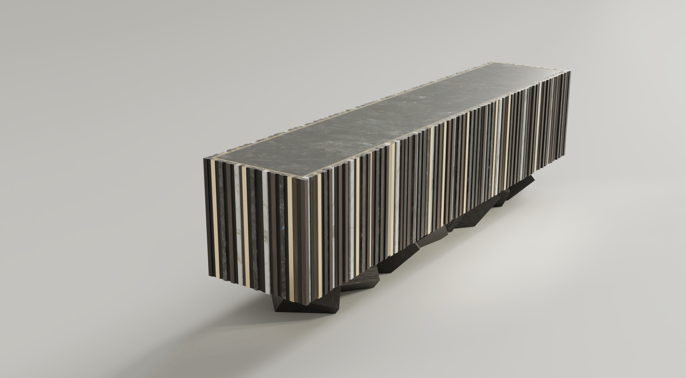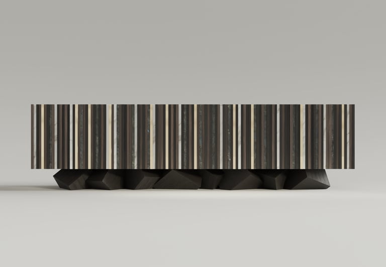 The Pyrite Console is the piece where it all began. Born from the same observation as the sculptural series of the same name, it translates the geometry of that mineral into a functional object without sacrificing any of its formal rigour.