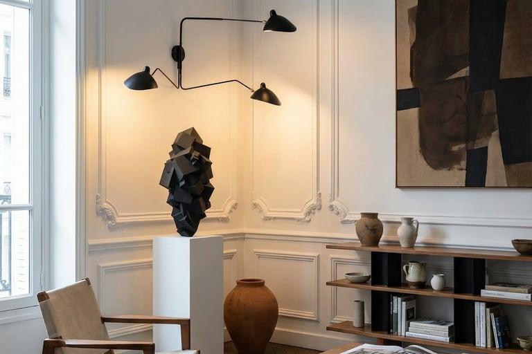 Je fabrique moi-même certaines pièces. Certains lampadaires Pyrite, par exemple, ont été presque entièrement réalisés à l'atelier : la conception, la fabrication des cubes, la marqueterie de paille. Seuls les socles en marbre et les abat-jour ont été confiés à des artisans, selon mes plans. J'ai procédé au montage final. Fabriquer soi-même, c'est comprendre depuis l'intérieur ce que signifie travailler la matière de ses propres mains.